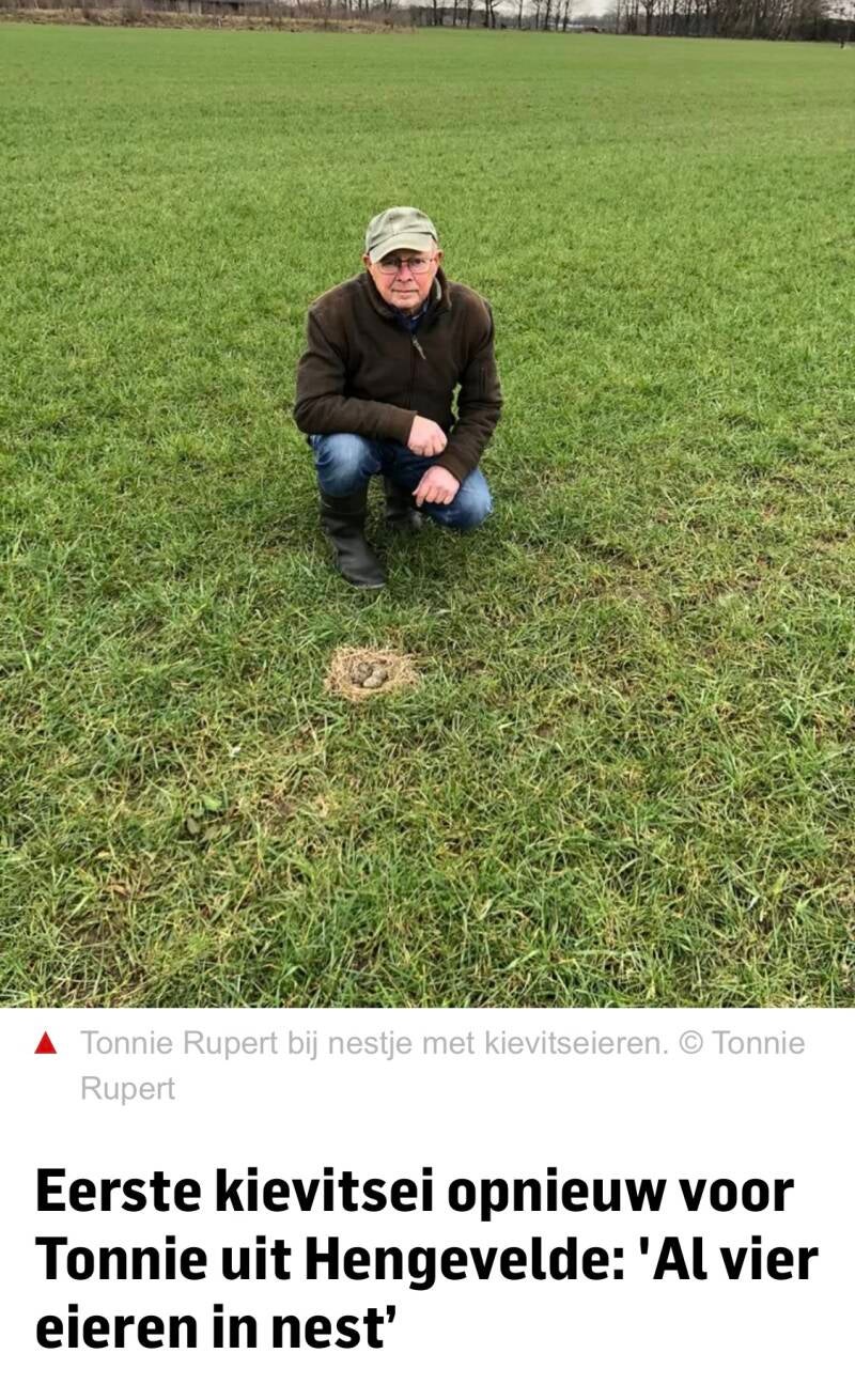 Tonnie Rupert uit Hengevelde vond donderdag 16 maart het eerste kievitsei in Twente van het jaar 2023. Hij was vorig jaar zelfs de eerste van het hele land. Tonnie is een ervaren weidevogelspotter.