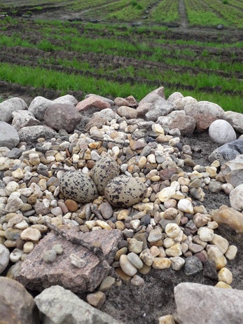Richard Goselink vond heel laat in het seizoen, zondag 23 juni 2024, nog twee nesten van kieviten op een akkerland bij Hengevelde. "Ik vond 1 nest met 4 eieren, en 1 nest met 3 kuiken en nog 1 ei."
